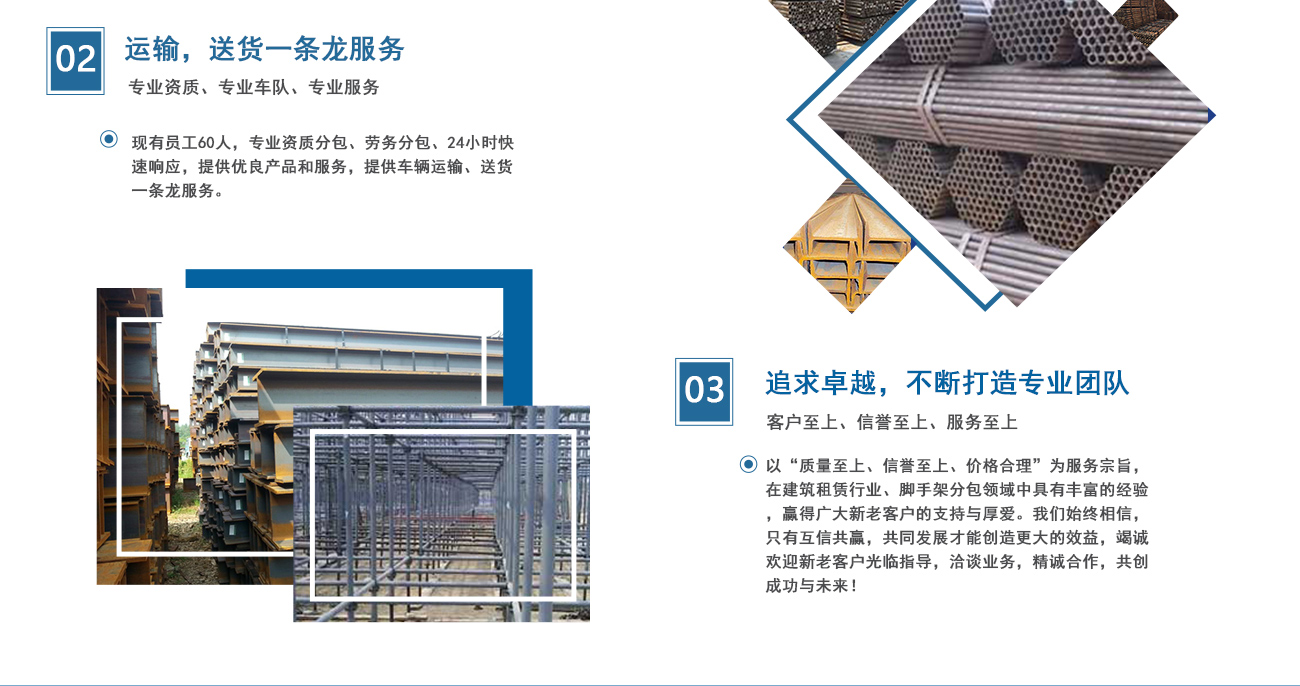安徽海洋建筑工程機械租賃有限公司、淮南佳輝建筑工程有限公司是由淮南興勝鋼管租賃公司起家的,從事專業腳手架資質分包、鋼管、扣件、槽鋼、頂托、接管器、裝飾腳手架搭設、吊籃、搭吊等機械設備的租賃業務。公司成立于1999年,憑借著專業水準和成熟技術,在業內迅速崛起并不斷發展創新。